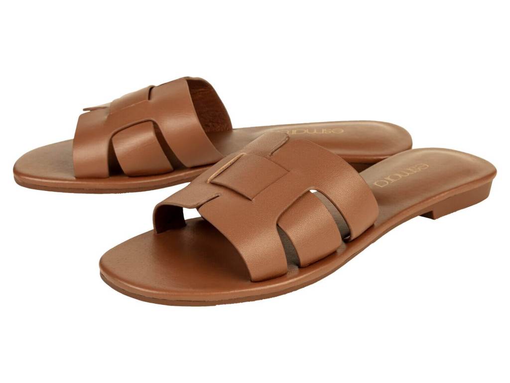 He aquí este modelo de Esmara al que hacíamos referencia, y que como ves se parece muchísimo a una de las sandalias más icónicas de Hermès, Oran. Con ese diseño de pala que en el que únicamente hay que introducir el pie, muchas eligen este tipo de zapatos cada verano porque es fácil de calzar. Es decir, no hay que estar perdiendo tiempo en amarrar tiras al tobillo o de cerrar hebillas. Además, su silueta con aberturas y superposiciones resulta elegante y bonita para llevar del día a la noche. Y son cómodas y ligeras para poder llevarlas de la mañana a la noche.