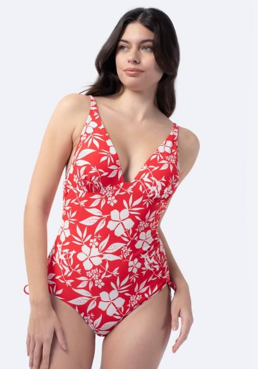 Del básico en negro pasamos a uno estampado a todo color: este bañador de flores de Carrefour en rojo y blanco. Su print nada discreto es perfecto para aquellas mujeres que quieran destacar en la playa o la piscina. En este caso, cuenta con un favorecedor escote en pico y con un fruncido lateral que se puede modificar en cuestión de gustos. De nuevo, hablamos de un modelo realmente barato para ser de nueva colección, pues cuesta menos de 16 euros (15,99 euros).