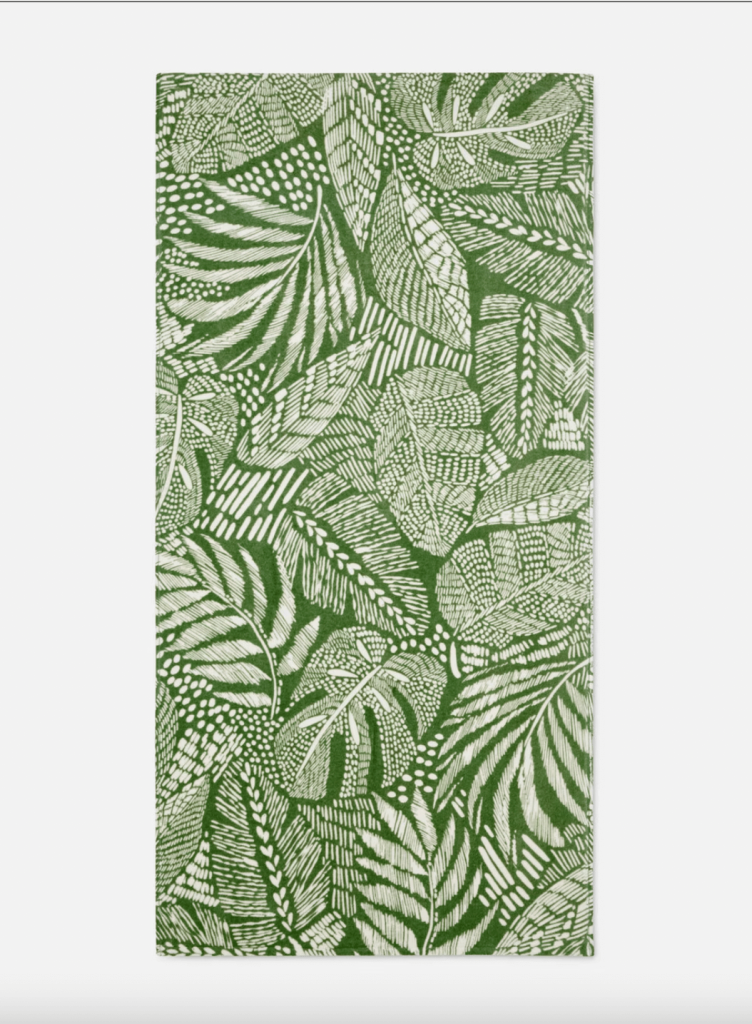 Si te gustan los estampados pero buscas algo más delicado y bajo perfil, esta toalla brillante en color verde y blanco es para ti. Precio: 9,00 euros.