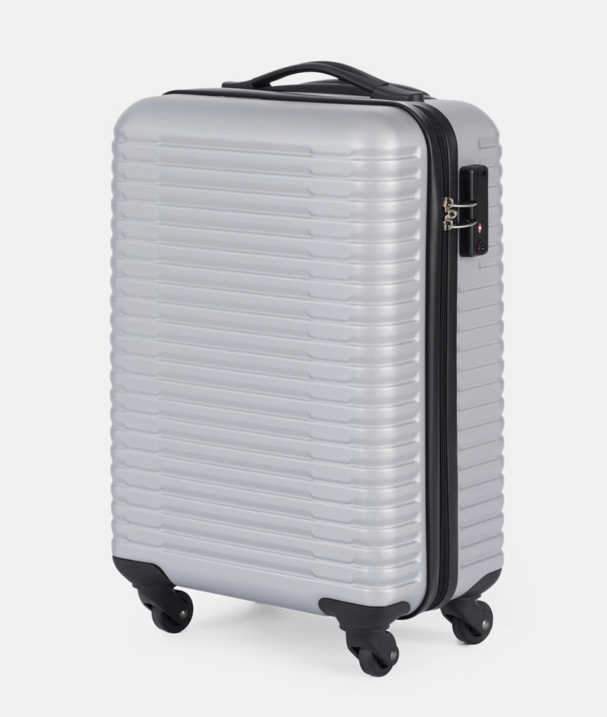 Por un poco más de dinero, en Primark también encontramos la típica maleta de cabina con cuatro ruedas y dos compartimentos interiores. Es el caso de este modelo plateado con diseño de rayas que cuesta 30 euros.