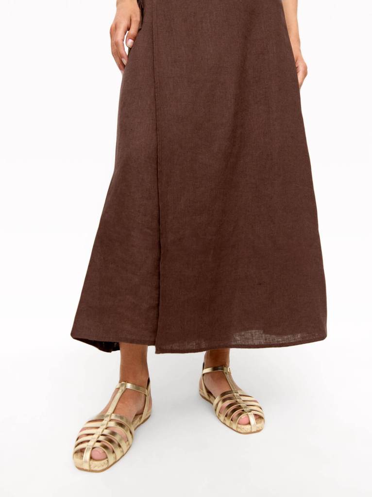 Como ya te hemos comentado, el dorado está súper de moda. Y no solo porque aporta un toque de glamour a los looks, también porque es súper versátil y combina con todo. Lo corroboramos con esas nuevas sandalias cangrejeras de Parfois, que quedan ideales con este vestido marrón de lino, pero que también vemos con un conjunto de camisa y pantalón azul o con una camiseta y una falda de flores, entre muchas otras opciones. Además, ya están tiradas de precio de por sí, pues solo cuestan 29,99 euros. Así que no nos extraña que las mujeres +50 las tengan ya en su radar para cuando empiecen las rebajas de julio, pues se quedarán todavía más baratas.