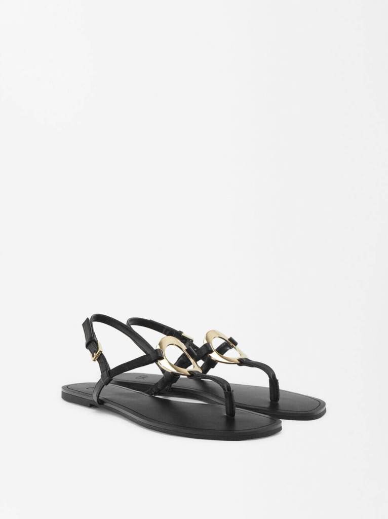 Y una opción que pega con todo son estas sandalias planas en negro de dedo con ese detalle en dorado, ideales para llevar con vestidos o pantalones en el verano. Y cuesta sin rebajas en Parfois solo 17,99 euros.