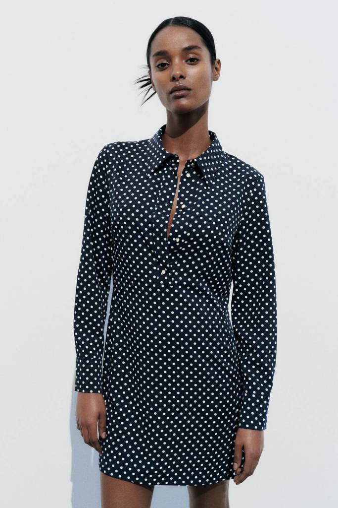 Vestido camisero de lunares de Zara