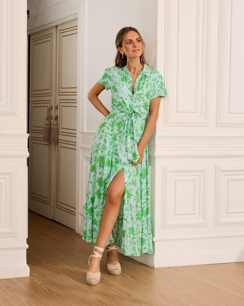 Y para aquellas mujeres +50 que quieran seguir vistiendo a todo color más allá del verano, este vestido camisero de Polin et moi nos parece ideal por sus tonos verdes. Largo hasta los tobillos y con mucho vuelo, resulta elegante y femenino para llevar con alpargatas de cuña. Y ha pasado de costar casi 80 euros a menos de 46 euros (75,95 euros 45,99 euros).