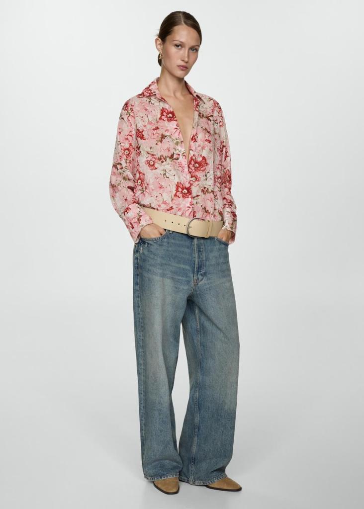 Esta blusa nos parece que tiene un estilo setentero, así que es ideal para crear look retro. Su estampado de flores rosa hace que quede bien con un traje más formal como con unos jeans y botas en un estilismo más desenfadado. Al ser fluida, proporciona libertad de movimientos y resulta favorecedora. Como las anteriores, es barata porque cuesta menos de 26 euros y es completamente nueva (25,99 euros).