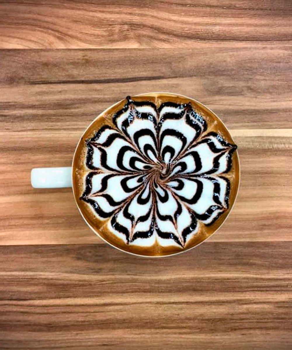 Inspirados en los diagramas simbólicos budistas, en la escuela de hostelería The Trendy Barista decoran los cafés simulando mandalas en su superficie. En esta ocasión no podrías colorearlo.