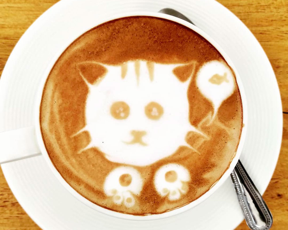 Rizando el rizo, los dibujos saltan de la segunda a la tercera dimensión y se convierten en pequeñas esculturas en la superficie de tu latte. Date mucha prisa en hacer la foto porque esta es una pequeña obra de arte efímera. En Saka Bistro & Bar son expertos.