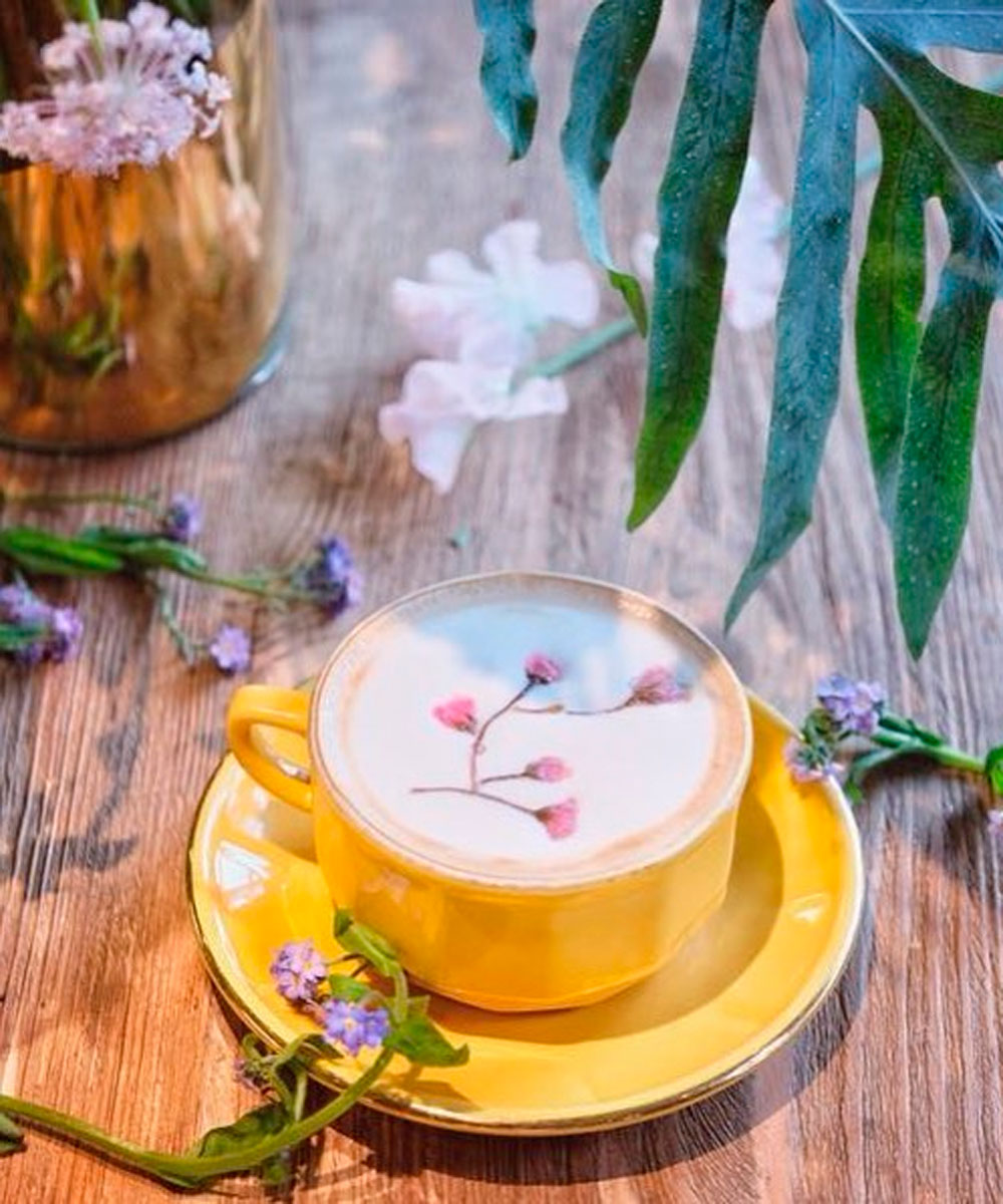 ¿Tienes unas florecitas secas que te sobraron de ese ramo primaveral? Mételas en un libro para que queden prensadas y después utilízalas para decorar un café. Mucho más sencillo que andar dibujando con espuma de café e igualmente ideal.