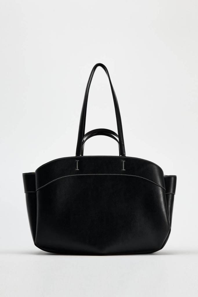 De los bolsos grandes más originales que hemos encontrado para este inicio de curso está este de Zara con bordes redondeados. Con un tono negro que te puedes poner con todo, este seducirá a las mujeres +50 por su diseño innovador con mucha capacidad. Y tiene asa de mano y asa de colgar, así que es versátil y la verdad que es bastante asequible para ser de nueva colección (35,99 euros)