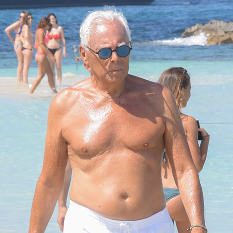 Giorgio Armani es capaz, a sus 82 años, de ponerse un bañador color blanco para pasear por las playas de Formentera. Lo cierto es que no nos extraña dado su envidiable estado de salud.
