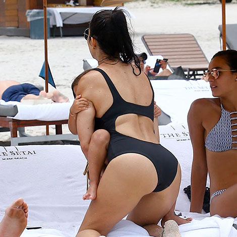 Kourtney Kardashian, o lo que es lo mismo la hermana de la celebritie más famosa del mundo (Kim Kardashian), tiene uno de los traseros más voluptuosos del panorama social internacional. Lejos de hacerla sentir acomplejada, Kourtney presume de trasero tanto a pie de playa como en la piscina, digan lo que digan.