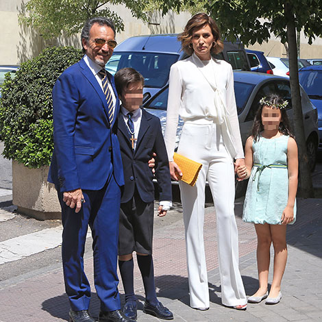 Espectacular el dos piezas de blanco que Nieves Álvarez escogió para acompañar a su hijo Adriano.