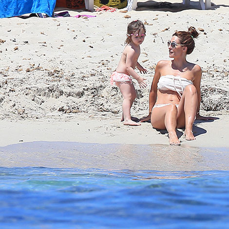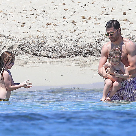 No fue solo la mamá la que estuvo pendiente de la benjamina de la familia. Xabi Alonso se pegó un refrescante baño junto a su hija y nos dejaron una de las imágenes más tiernas cogidos de la mano. El futbolista lució tabletas y músculos, con un bañador de rayas, con el que dejó al descubierto que sigue siendo uno de los futbolistas españoles más atractivos.