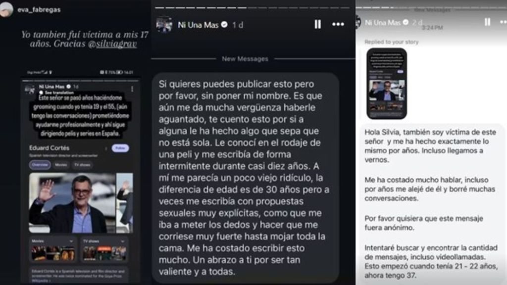La actriz Norah Alexandra Vega, que se unió a la denuncia de Silvia, compartió su experiencia: "Le conocí en el rodaje de una película y durante casi diez años me escribía. A veces me enviaba propuestas sexuales, como que me iba a meter los dedos y hacer que me corriese". Otra joven, que prefirió el anonimato, describió cómo Cortés le ofrecía clases de cine a cambio de posar desnuda, revelando su falta de respeto hacia las mujeres.