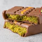 Se trata de una barra de chocolate con leche, rellena de masa kataifi tostada con mantequilla, crema de pistacho y además, unos trozos enteros de pistacho. Estos tres elementos hacen que, además de ser un bocado dulce, sea toda una experiencia crujiente. La pastelería la comercializa en sus tiendas físicas y a través de su página web, haciendo que esta tableta de chocolate tan demandada la pueda probar toda España. Los precios de la unidad oscilan entre los 14 y los 38 euros, dependiendo de su peso.