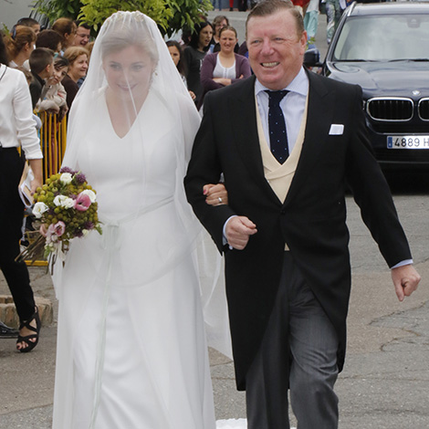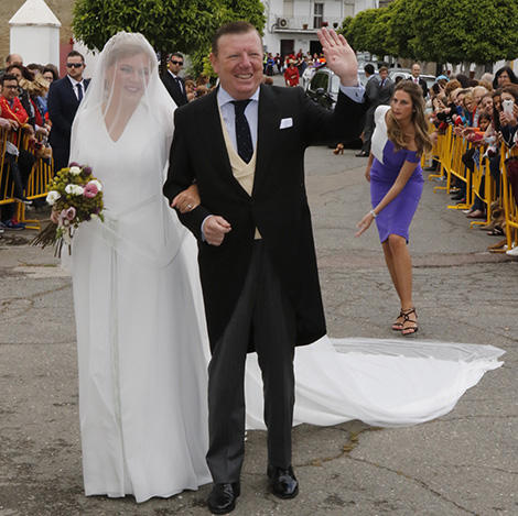 Marta Cadaval, hija del humorista César Cadavalde y Patricia Rodríguez, llegó del brazo de su padre hasta la iglesia del Real de la Jara, Sevilla, para darse el 'sí, quiero' con Jaime Núñez Mendo. Así de radiantes se mostraron padre e hija ante el gran acontecimiento, en el que el ex miembro de 'Los Morancos' no cogía en sí de tal orgullo.
