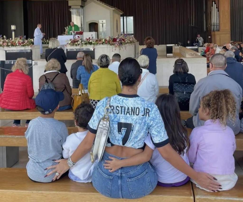 En otra de las fotografías, la influencer aparece sentada junto a sus hijos en uno de los bancos de la iglesia, abrazándolos mientras escuchan la misa con la compostura y respeto que el lugar merece. En su camiseta, se lee el nombre de Cristiano Jr., el único de sus hijos que no estaba presente, mostrando que, a pesar de la distancia, todos sus hijos están siempre en sus pensamientos. Cristiano Ronaldo, por su parte, no pudo acompañar a su familia en esta visita debido a su participación en la Eurocopa 2024.