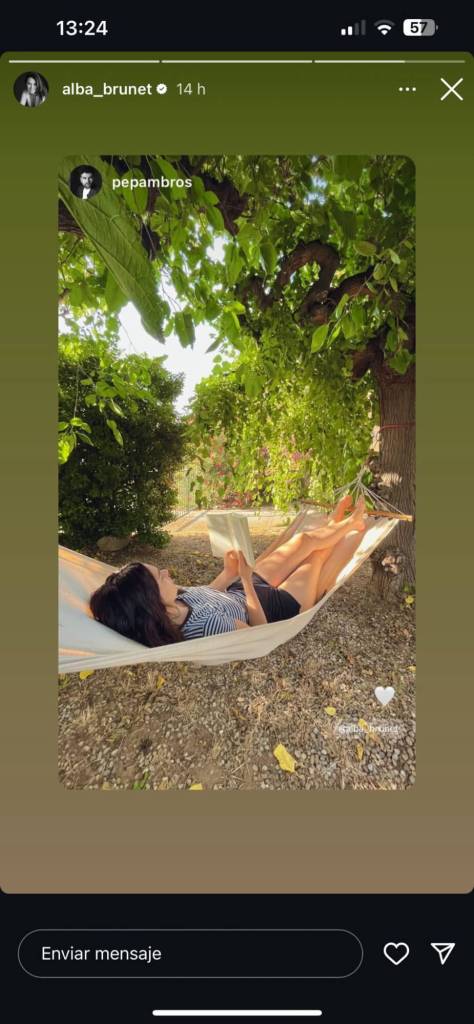En las fotografías, vemos a la actriz mallorquina disfrutando de varios momentos junto a su chico, el también actor Pep Ambrós, con quien suele acudir a eventos como festivales de música o cenas con amigos. En otra de la historias que ha subido a su perfil en esta conocida red social, la vemos disfrutando de un buen libro al aire libre en una cómoda hamaca. Si es que nuestra Alba Brunet sabe cómo sacarlo provecho a la vida...y al verano. Y es que, no es la primera vez que vemos a la intérprete mallorquina disfrutando de la montaña, el mar, es decir, de la naturaleza. Desde aquí, solo deseamos que disfrute de estos días y que regrese al rodaje de la ficción diaria de Antena 3 con las pilas cargadas, porque se lo merece.