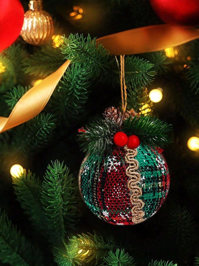 Más tradicional es este diseño de Shein. Con una decoración en la parte de arriba con ramas y frutos de acebo y una piña, se combina con una bola decorada con motivos navideños. El precio es de 2 euros por unidad.