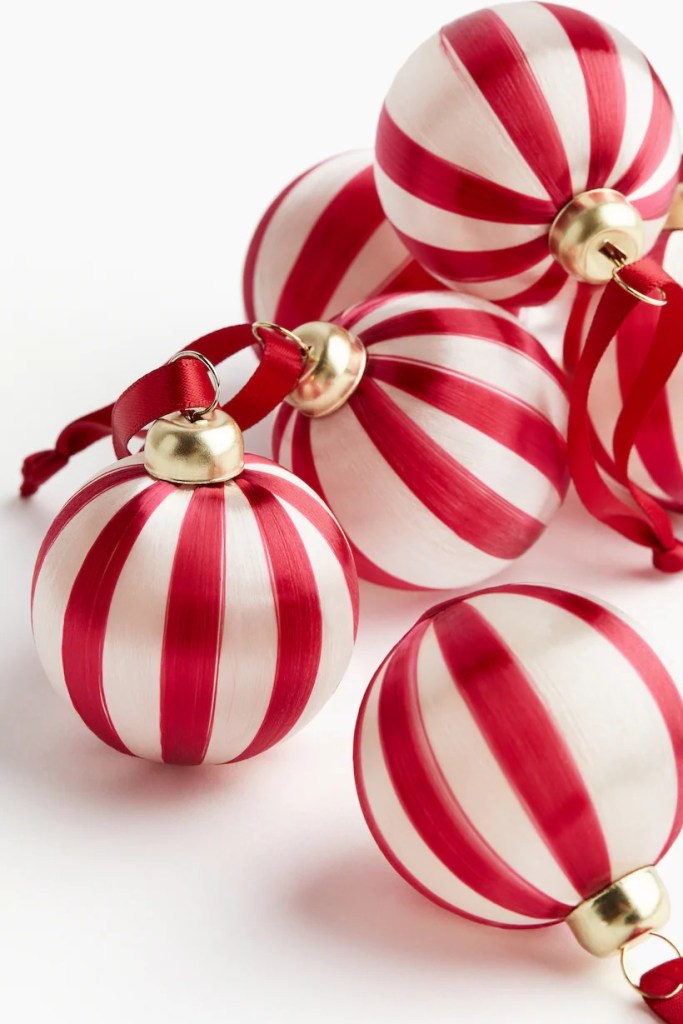 No podía faltar decoración para árbol, como estas bolas de navidad pequeñas con motivo candy. Esta decoración de H&M está diseñado a rayas blancas y rojas. El diámetro de cada una es de 4,5 cm. Lo ideal para decorar un árbol pequeñito. El precio es de 4,99 euros.