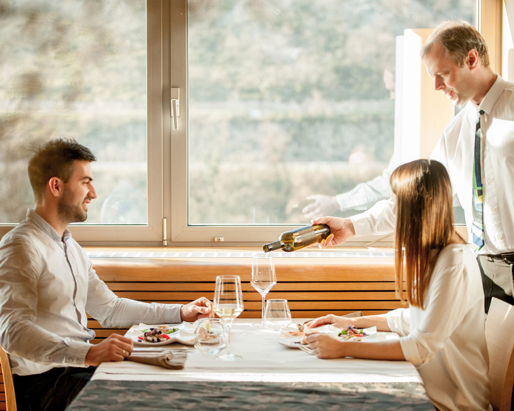 Entonces el sumiller te preguntará que cómo te gusta el vino y que en qué has pensado y es el momento de decirle: "Pues me gustaría probar algo de la zona, sin demasiada madera (si vas a tomar un tinto), que sea ligero y que encaje con la comida". Y ya dejarte asesorar por sus recomendaciones.
