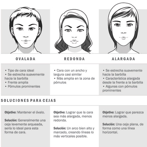 Soluciones de cejas para rostros ovalados, redondos y alargados (fuente Mírame Lashes & Brows).