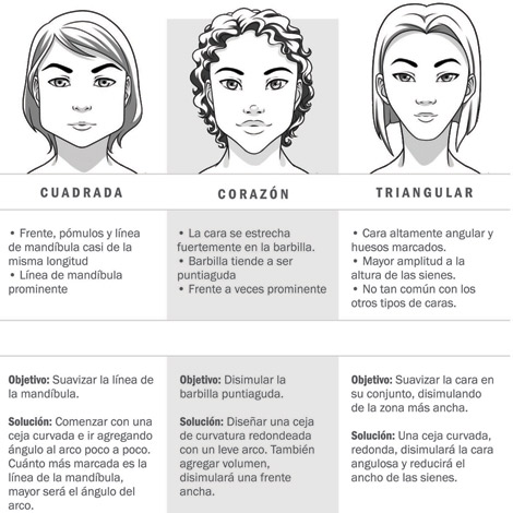 Soluciones de cejas para rostros cuadrados, con forma de corazón y triangulares (fuente: Mírame Lashes & Brows).
