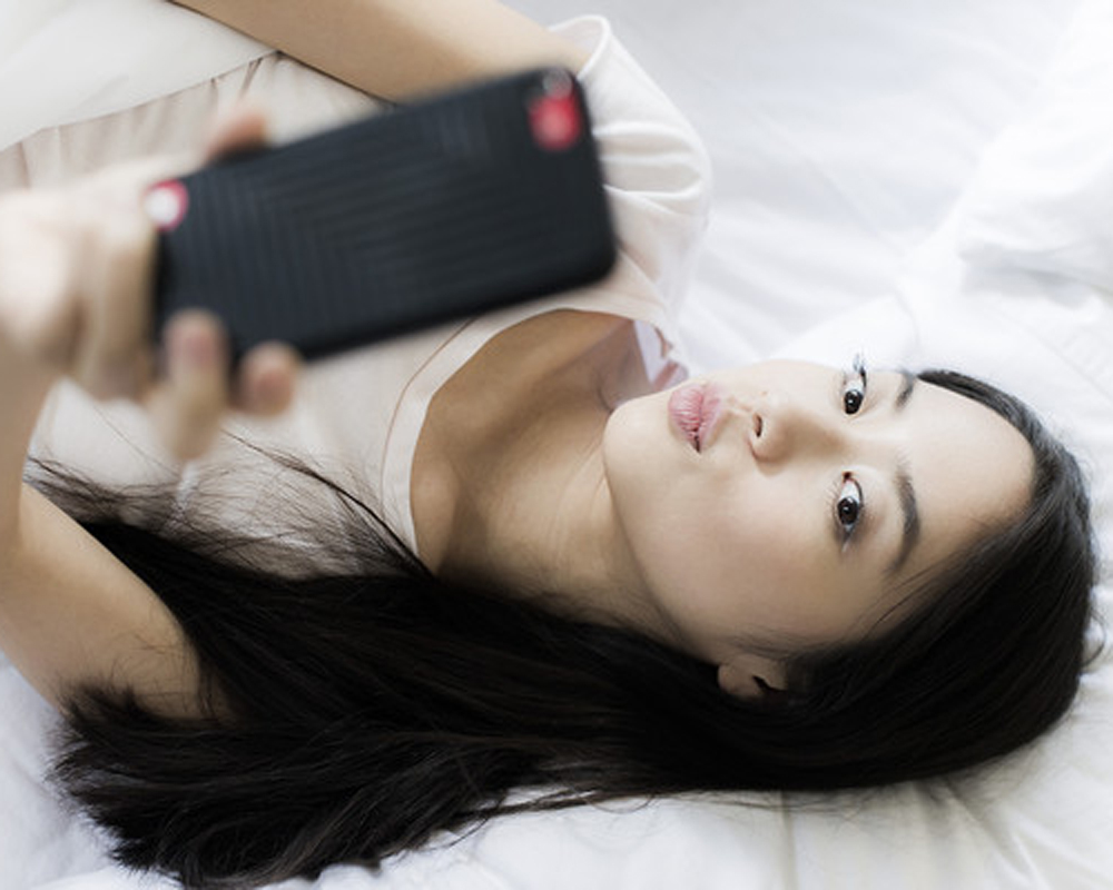 En la mirada está la fuerza de la expresión. Concéntrate en expresar con tus ojos, más que con tus labios, tu estado de ánimo, y mira ligeramente por encima del objetivo de la cámara.