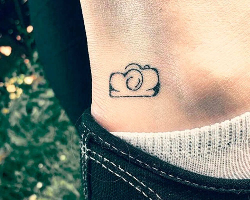 Las ilustración artística es otro de los motivos más demandados a los tatuadores especializados. Esta original cámara de fotos es un ejemplo perfecto de la 'vuelta de tuerca' que está experimentando en tattooart, si además es tiny, mejor que mejor. (Instagram tatoo.87).