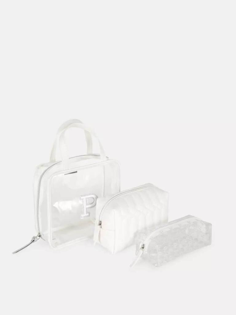 Se trata de un neceser blanco con transparencias que viene con 3 estuches para guardar nuestros productos como queramos. Por ejemplo, el más grande, lo podemos utilizar para almacenar el maquillaje ya que es amplio y se abre completamente, de forma que todos los productos queden dispuestos a la vista. En el siguiente, nuestro kit de skincare y en el último el champú, gel, hidratante, after sun, esmalte de uñas, entre otros. Eso sí, en versión mini para no tener inconvenientes a la hora de viajar.