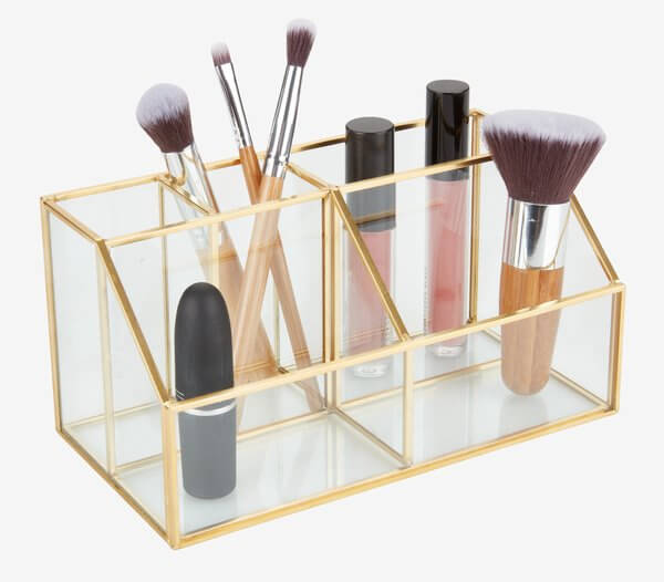 Y como segunda opción y para aquellos productos que utiliza a diario, emplea un organizador de maquillaje como este de la imagen, que es de JYSK (13,50 euros). "Para colocar en el maquillaje que utilizo en el día a día, me viene muy bien este organizador de cristal donde coloco los productos por secciones. En una compartimento va los productos para la cara, en otra va lo que utilizo para las pestañas, en otra los labiales, en otra los iluminadores y en otro los coloretes", asegura la experta en orden Alicia Iglesias. Es decir, ella separa cada tipología de producto por compartimentos en este tipo de organizadores que, además de funcionales para ordenar, quedan bonitos estéticamente en el tocador, en la cómoda, en el baño...