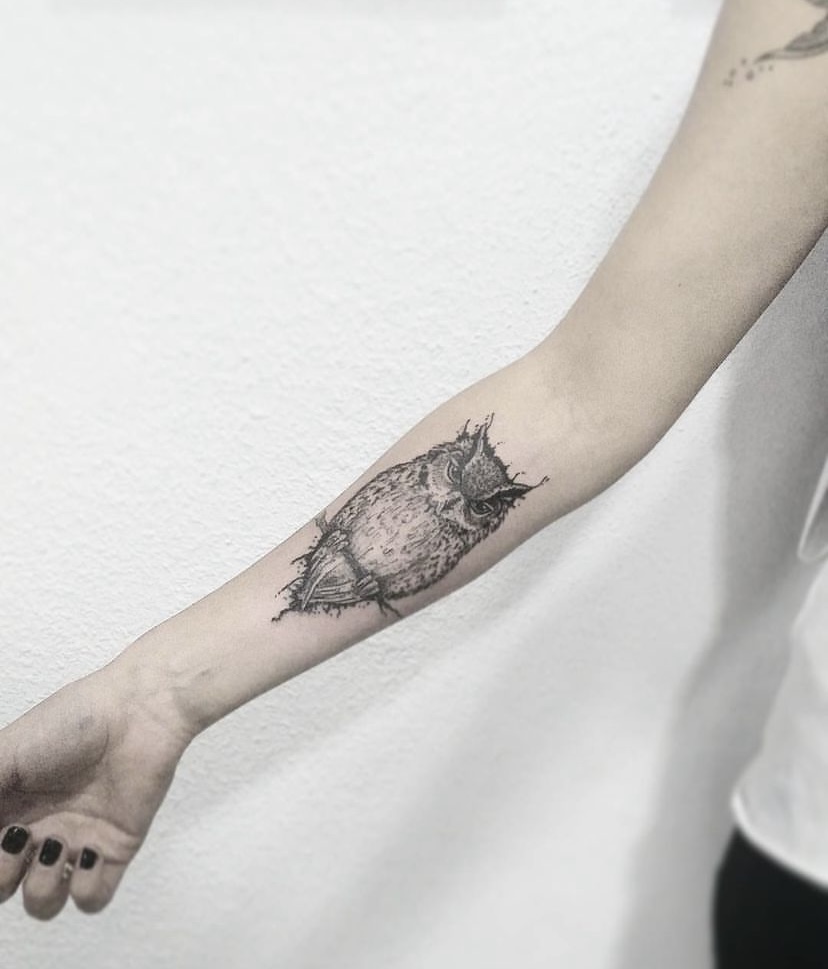Dentro de estos diseños de tatuajes de suerte y fuerza no podía faltar un búho. Es un símbolo de sabiduría y conocimiento, así que es un elemento que simboliza el poder para quien lo lleva tatuado.