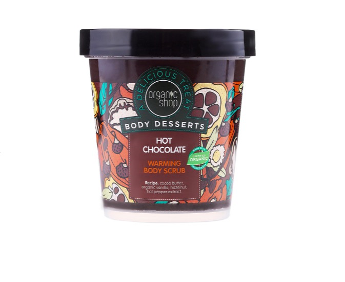 Con manteca de cacao, vainilla y extracto de pimiento picante, este exfoliante corporal te relajará y te ayudará a eliminar las células muertas de la piel. De Organic Shop (c.p.v.)
