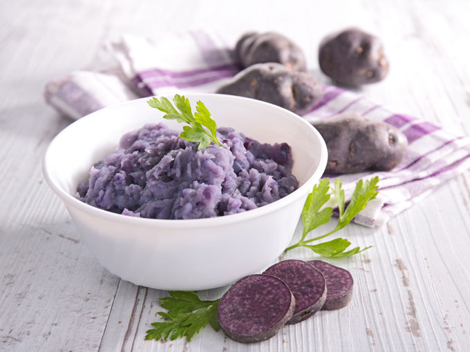 Las patatas violetas o Vitelotte son ricas en antioxidantes (sobre todo gracias a su alto contenido en antocianinas, responsables también de darles ese color tan particular), característica que comparten con otros alimentos de color violeta, como los arándanos (puedes saber más sobre el color de los vegetales y sus nutrientes en nuestro artículo “El significado del color de los alimentos”). Por ello, este tipo de patata es eficaz para combatir el colesterol alto y otras enfermedades cardiovasculares.