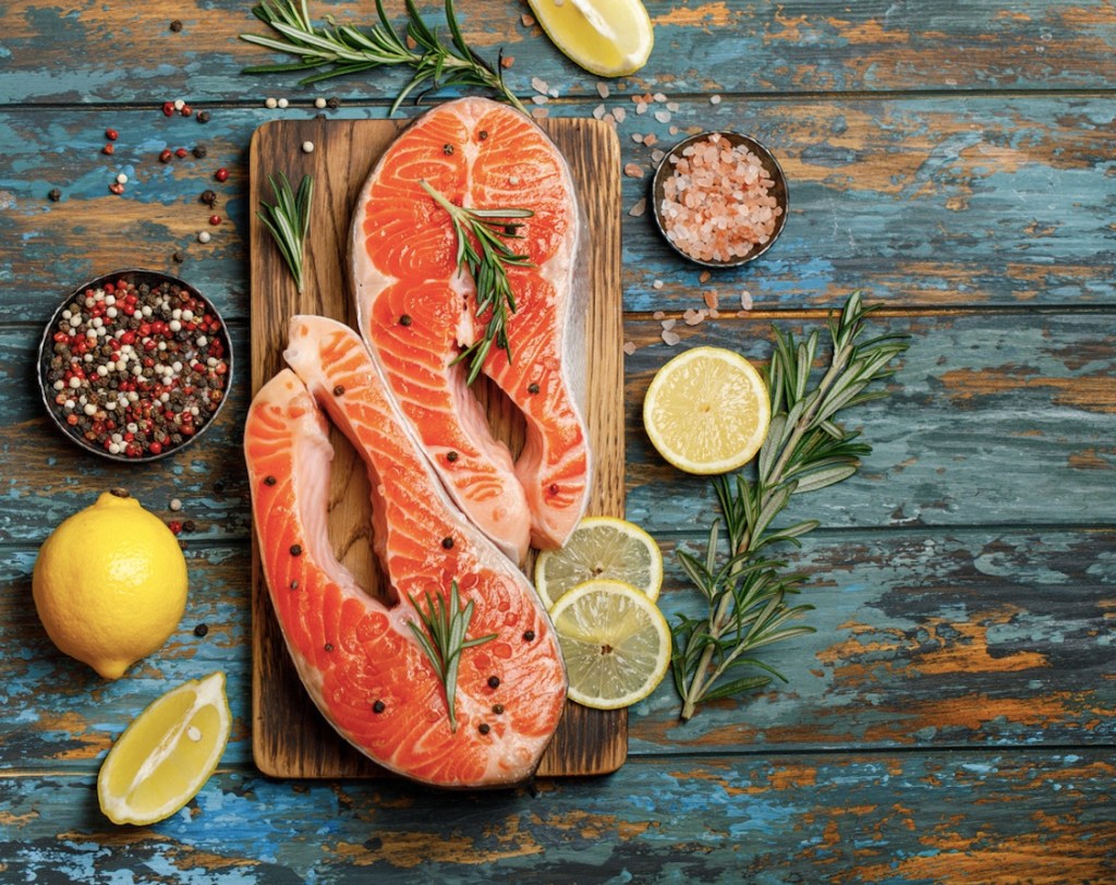 - Salmón: este pescado con lomos de color naranja intenso contiene entre un 1,5 y 3 mg por cada 100 gramos de producto. Es una opción muy recomendable, como fuente de ácidos grasos beneficiosos para la salud. Además, también contiene vitaminas liposolubles como la A y la D.