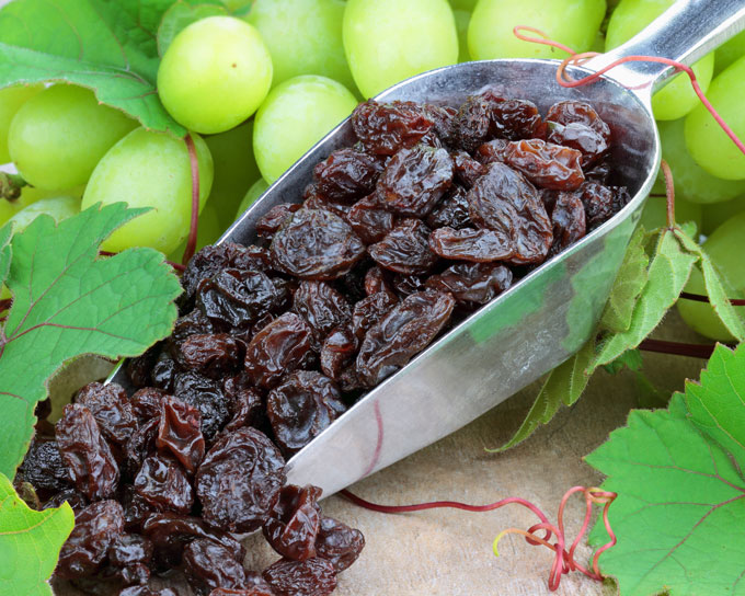 Las uvas pasas tienen un alto contenido en fibra: 4 gramos por cada 100 consumidos. También son una fuente importante de antioxidantes y de hidratos de carbono.