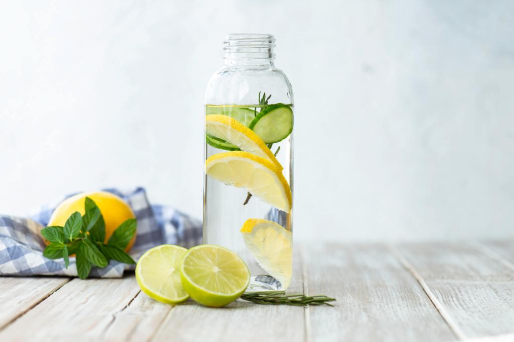 - Agua con limón. Puedes añadirle una rodaja de limón para que tenga un sabor distinto.