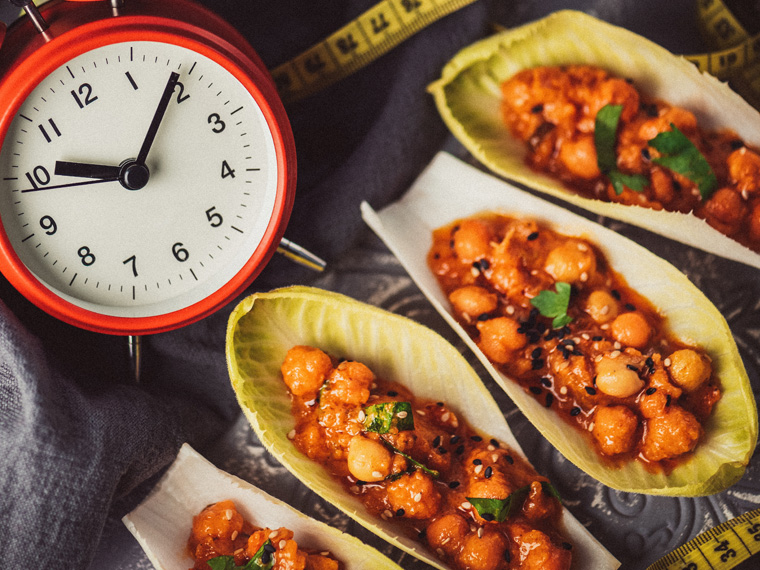 Puede parecer una mezcla extraña, pero te aseguramos que te sorprenderá gratamente su textura aterciopelada. También puedes usar los garbanzos en forma de hummus. Usa las hojas de las endibias como base y rellénalas a tu gusto.