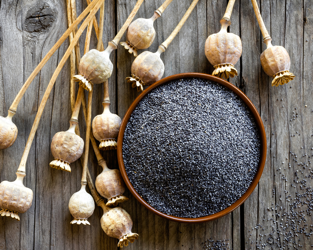 Las semillas de amapola provienen de la flor del mismo nombre y se utilizan como un ingrediente popular en la cocina, sobre todo en productos horneados. Dos cucharadas soperas de estas semillas aportan ácidos grasos saludables Omega 3 y Omega 6, y un 7 % del valor diario de fibra. Por ello son saciantes, evitan el estreñimiento y reducen los niveles de colesterol en sangre.