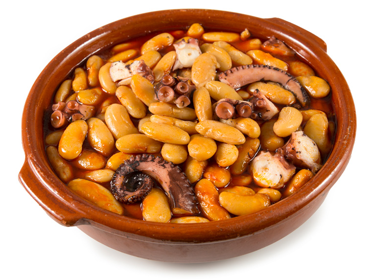 Dado su alto aporte en proteínas, el pulpo es un excelente alimento si sufres de uñas quebradizas o cabello sin vida. Hay numerosas maneras de consumirlo, más allá del popular pulpo "a feira" o a la gallega, en la foto una deliciosa receta con alubias, que además aportan un extra de hierro y vitamina B.