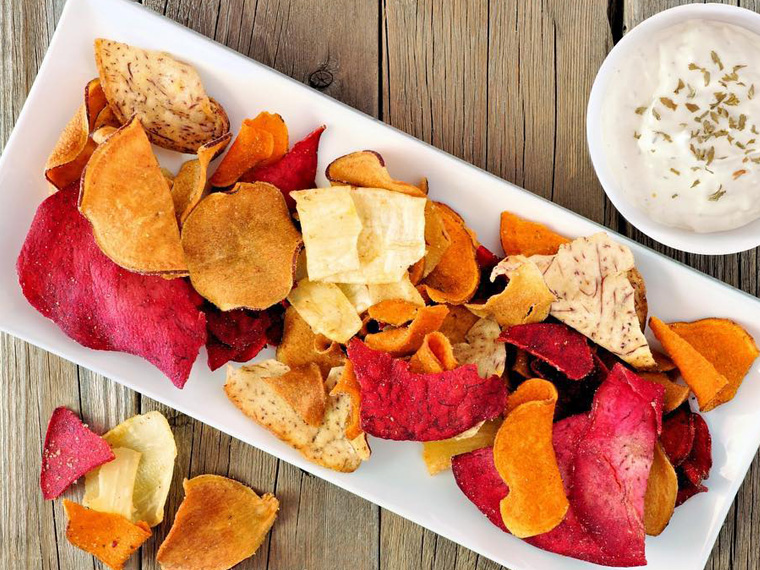 El contenido graso medio de los chips vegetales es del 30 %, que no dista demasiado del de las patatas fritas, situado en el 31,8 %. En ambos casos, la grasa proviene del aceite en el que se han preparado los snacks. Además, también tienen muchos azúcares.
