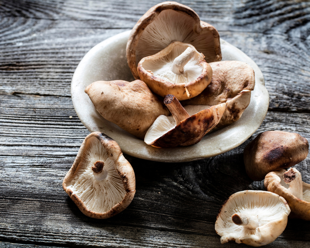 La seta shiitake contiene mucha cantidad de cobre, un oligoelemento esencial para la fabricación de colágeno, que mantiene la tersura de la piel. Además, como las setas son ricas en agua, aseguran una correcta hidratación de la misma.