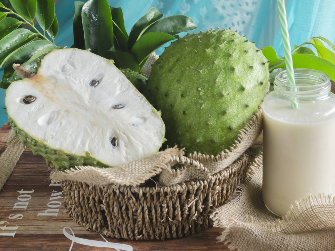 La guanábana es una fruta tropical con excepcionales propiedades para la salud. Este alimento es una verdadera bomba de vitaminas, minerales y antioxidantes. Es rica en vitamina C (100 gramos de la pulpa contienen el 25% de la cantidad de vitamina C recomendada al día), vitamina B1, B2 y B6. Además es rica en minerales como el hierro, magnesio y potasio. La guanábana también posee un alto contenido de fibra, que contribuyen a un correcto funcionamiento del tránsito intestinal.