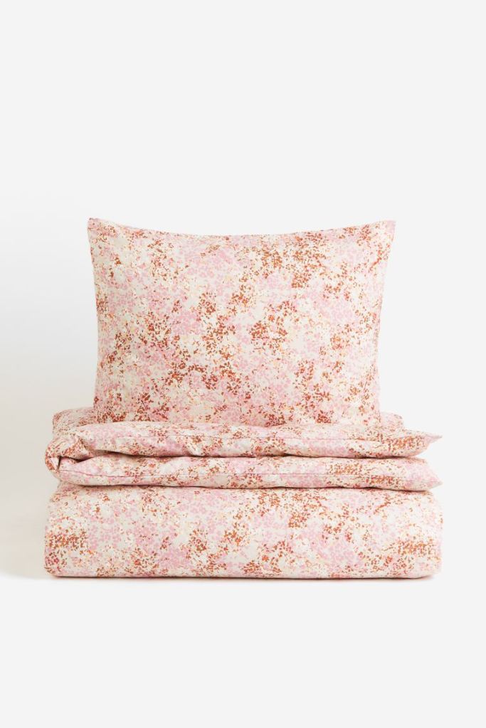 No solo la decoración o el mobiliario son aptos para renovar el dormitorio, la ropa de cama también puede hacer mucho en esta tarea. La cama, al fin y al cabo, es lo que más llena en estas estancias, así que cambiar el edredón también será una opción económica para darle un cambio de aires a esta habitación. Este conjunto de funda nórdica individual de algodón de H&M Home es muy barato (24,99 euros) e ideal para darle a tu dormitorio un toque romántico.