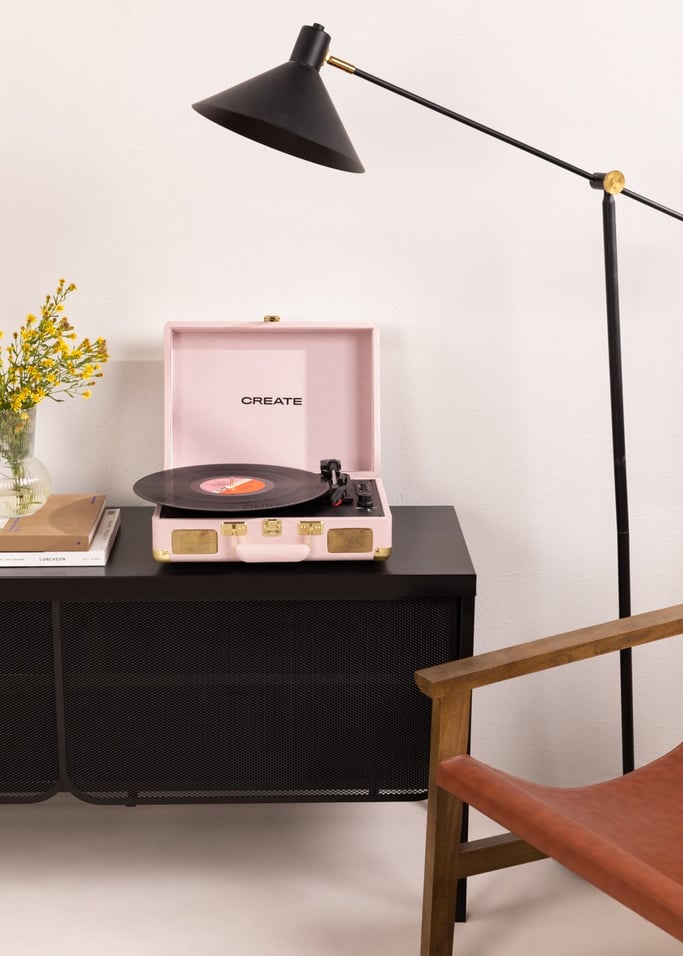 Pero, sin duda, si quieres darle un toque diferente a tu habitación, un objeto funcional y vintage como este tocadiscos de Create será una buena opción (54,95 euros). Su tono rosa claro es precioso para darle color a la estancia, y su diseño retro es ideal para renovar la estética de tu dormitorio. Además el tocadiscos cuenta también con altavoz Bluetooth con entrada USB y de tarjetas SD y Micro SD, y reproduce y graba MP3.