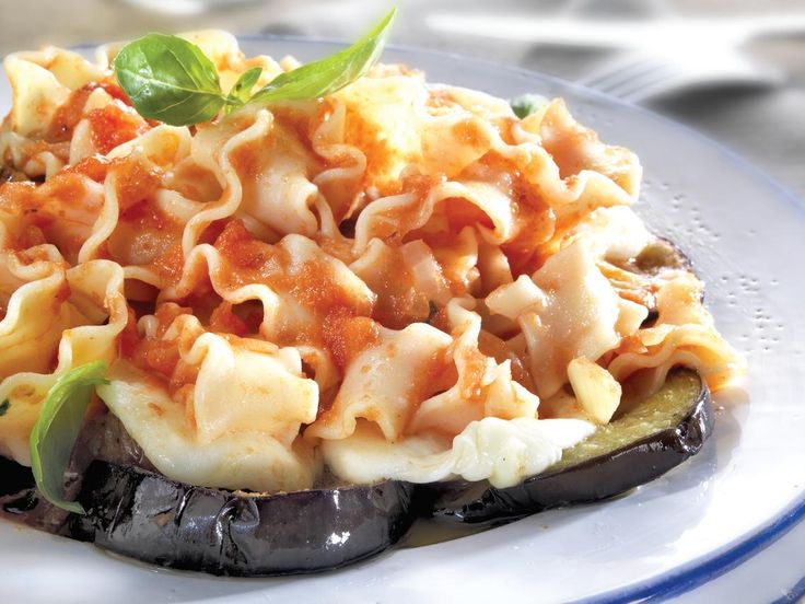 ‘Mafaldine' con berenjenas y tomate