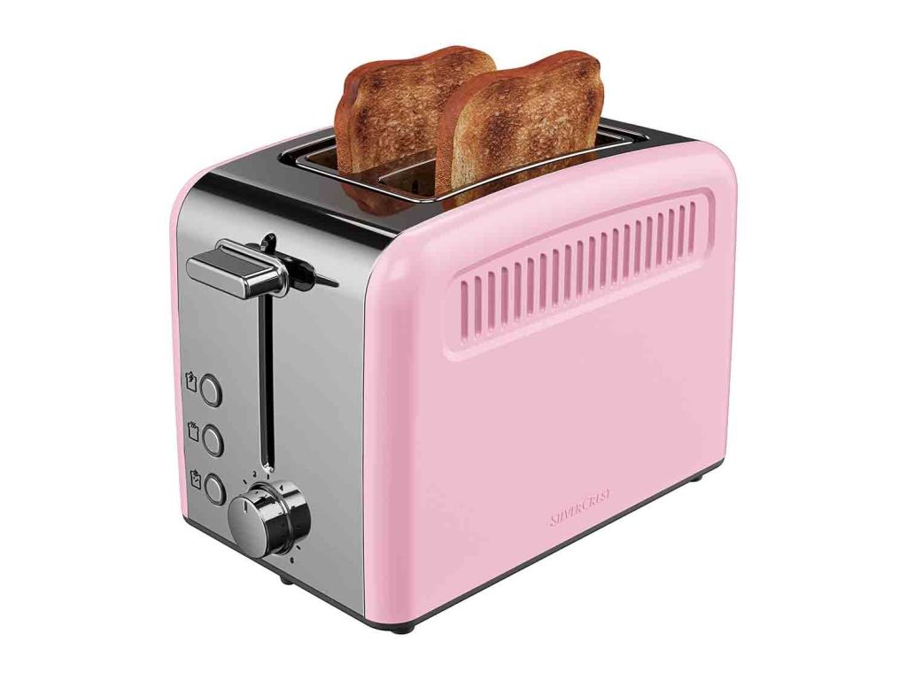 Con una potencia de 950w y un diseño precioso en rosa degradado. Además de tener una bandeja recogemigas extraíble, contar con frontal de acero inoxidable pulido y laterales lacados en un rosa muy bonito.