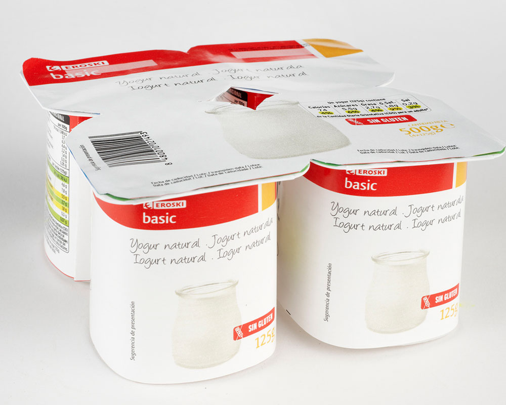 El yogur natural de la marca Eroski también cuenta con una valoración de 71 sobre 100, teniendo en cuenta todos los aspectos básicos. Sus ingredientes principales son: leche parcialmente descantada, leche en polvo y fermentos lácticos. Y del mismo modo, su precio es de 0,53€ por cada pack de cuatro.