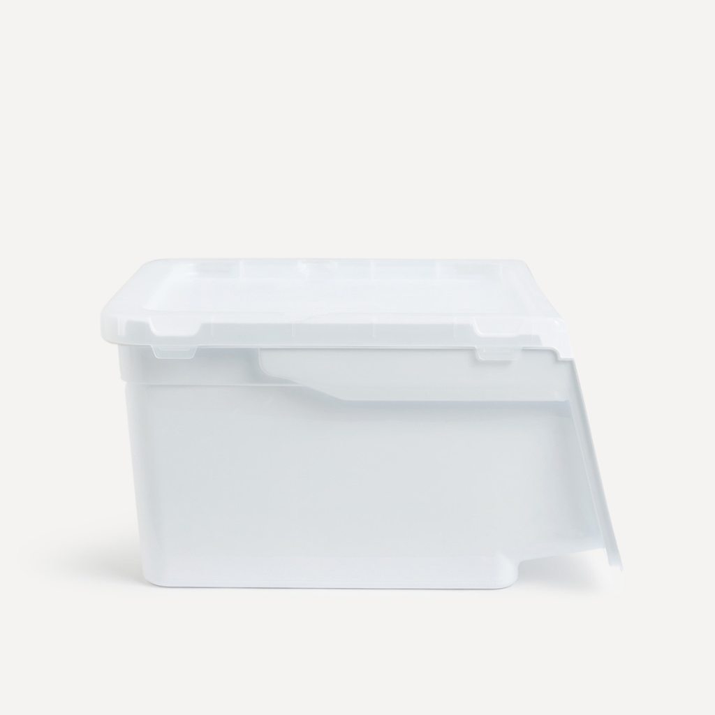 Si no cuentas con mucho espacio para tener grandes cajas organizadoras o fundas para la ropa de grandes dimensiones, otra opción que te puede ayudar a mantener el orden al hacer el cambio de armario son este tipo de cajas apilables de El Corte Inglés. Esta se abre a través de una tapa, para que no tengas que moverla si tienes una torre confeccionada si las apilas. Por ejemplo, puedes poner estas cajas apilables en una esquina del armario o distribuidas por huecos que te queden libres. Además, al ser de plástico traslúcido, puedes saber lo que contiene con un simple vistazo (8,95 euros).