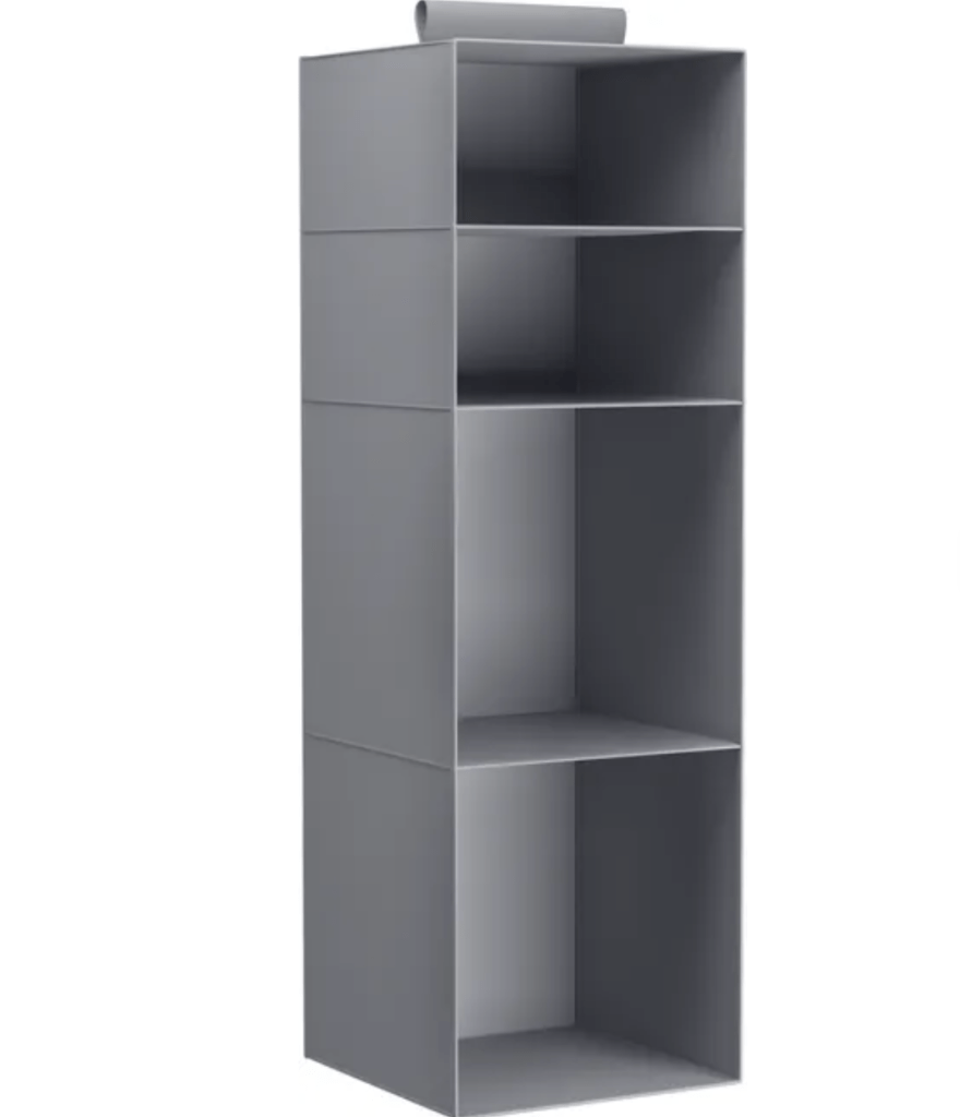 El armario siempre es un punto de desorden en todo dormitorio. Si no contamos con organizadores dentro de él, es difícil mantener el orden dentro del mismo. Por ello, estanterías colgantes como esta de Leroy Merlin con cuatro baldas nos parecen una muy buena opción para ordenar este mueble. Al ser cada una de las baldas de un tamaño, puedes ordenar por tipología según tengas más o menos jeans, jerséis, camisetas... Además, está tirado de precio (7,29 euros).
